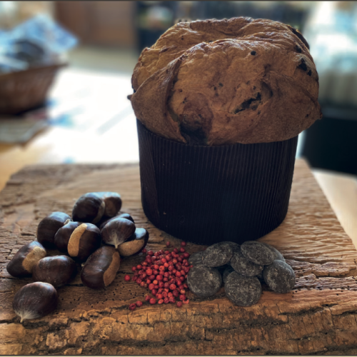 PANETTONE MARRON GLACé, CIOCCOLATO FONDENTE EXTRA E PEPE ROSA