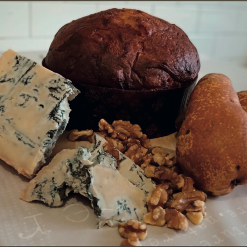 PANETTONE FORMAGGIO ERBORINATO PICCANTE, PERE E NOCI